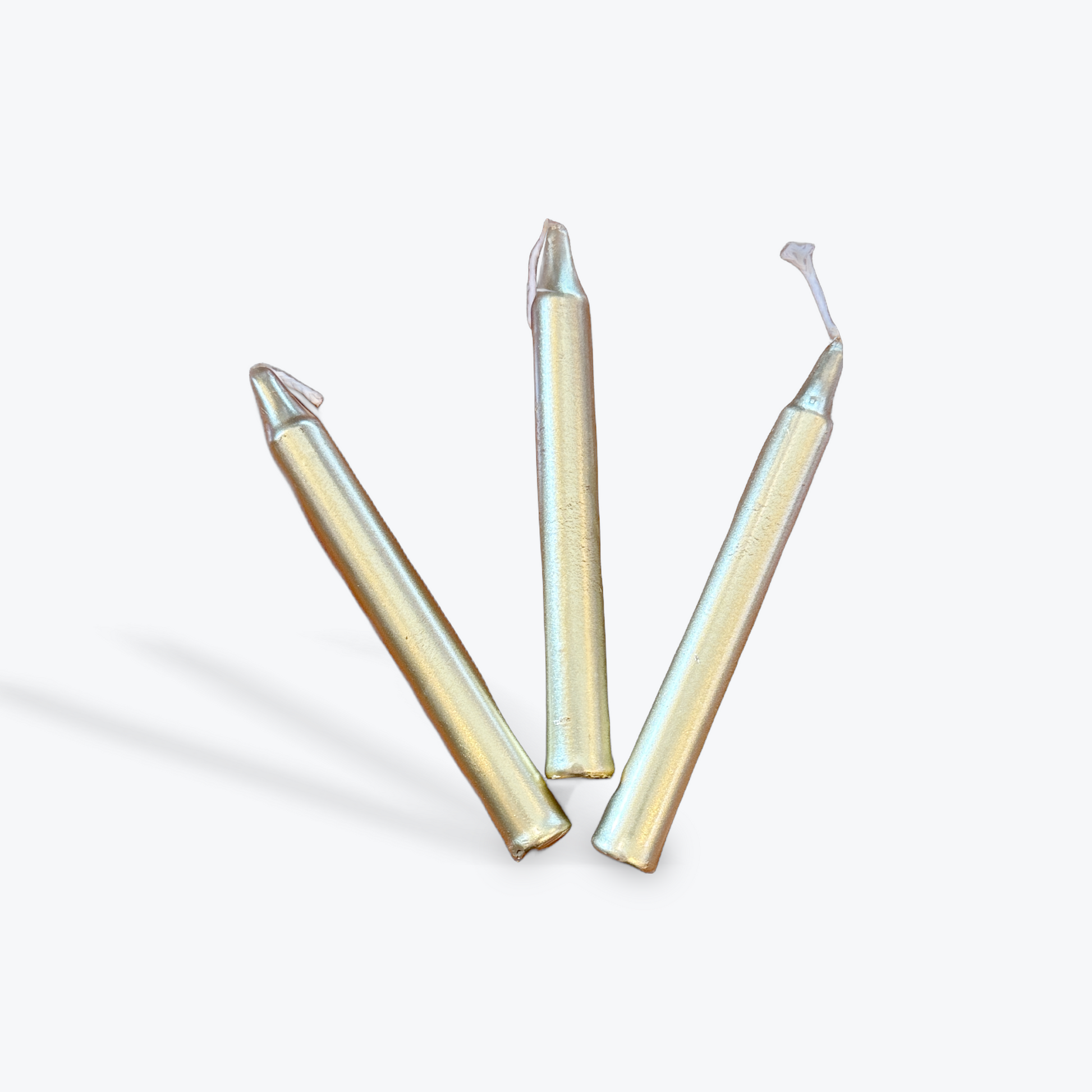 In candle magic, a Gold candle represents success, enlightenment, wealth and divine connection. It's often used in rituals for attracting prosperity, financial gain, and spiritual insight. On the other side, a Silver candles are commonly associated with intuition, dreams and the moon's energy. They are often used to enhance psychic abilities, aid in divination, and interpret dreams. Additionally, silver can represent stability, protection, and the removal of negativity.